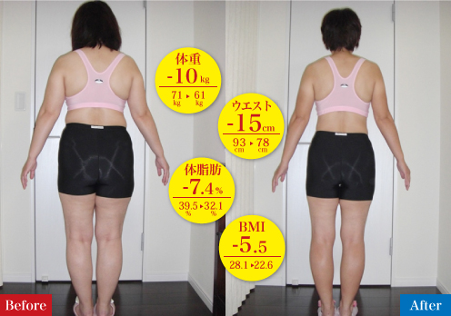 洋服のサイズも13号→9号になり、洋服を選ぶのが楽しくなりました。