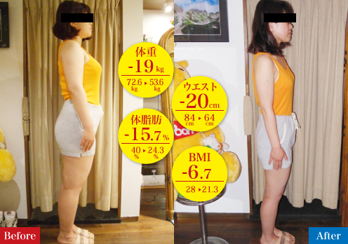 体重が減ってくると嬉しくて、仕事から帰ったら食事の前後に何回も体重計に乗っていました。もともと身体を動かす事が好きなので、痩せて身体が軽くなったこれからは、スノーボードなど思いっきり楽しもうと思います!