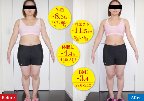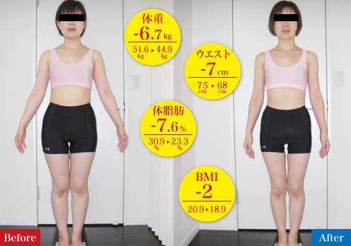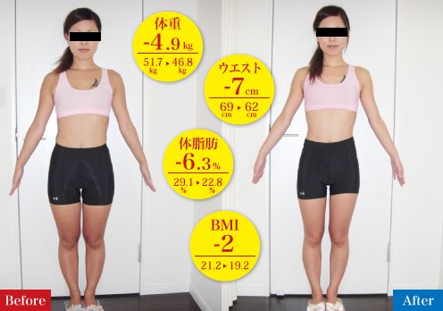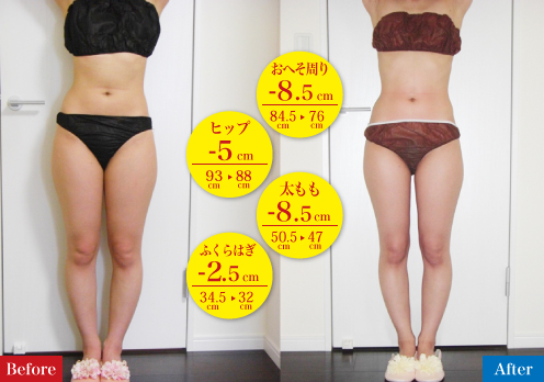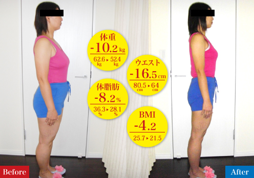気にしていたお腹周りもスッキリして、ウエストもくびれたのにバストが落ちていないのが不思議です。