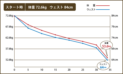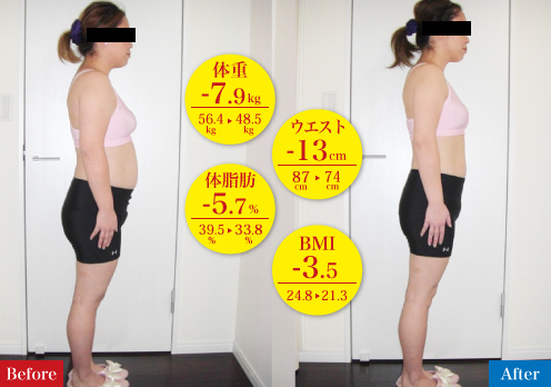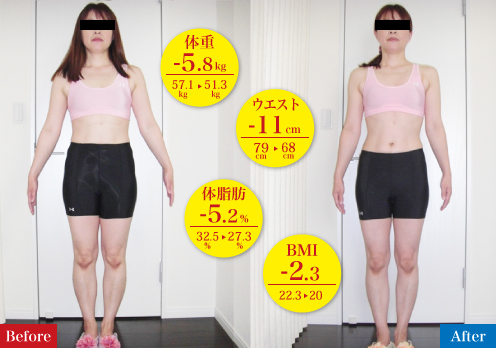 スタートして2週間で、ウエストが-5㎝減ったのは嬉しかったです。